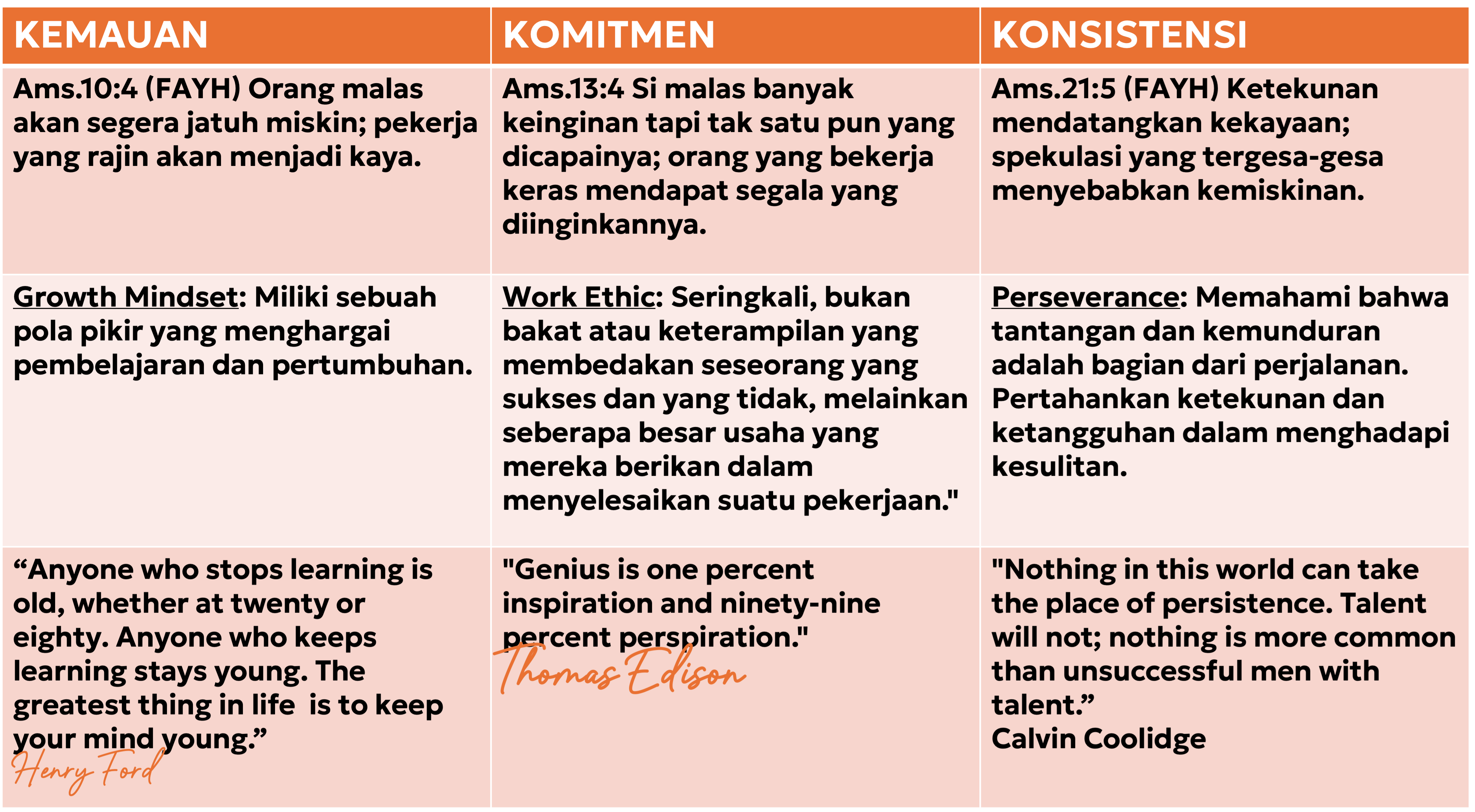 Pada akhirnya kita menyadari bahwa karier yang baik, penghasilan yang besar atau usaha yang berhasil, adalah BONUS, TUJUAN dari pekerjaan adalah untuk menghormati Tuhan, melayani Tuhan dan melayani orang-orang lain.
